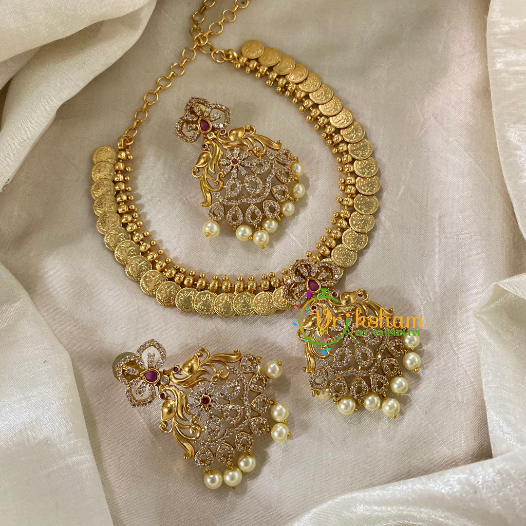AD Stone Pendant Coin Choker Short Neckpiece -red AD stone floral pendant and coin patterned choker short neckpiece with earrings.