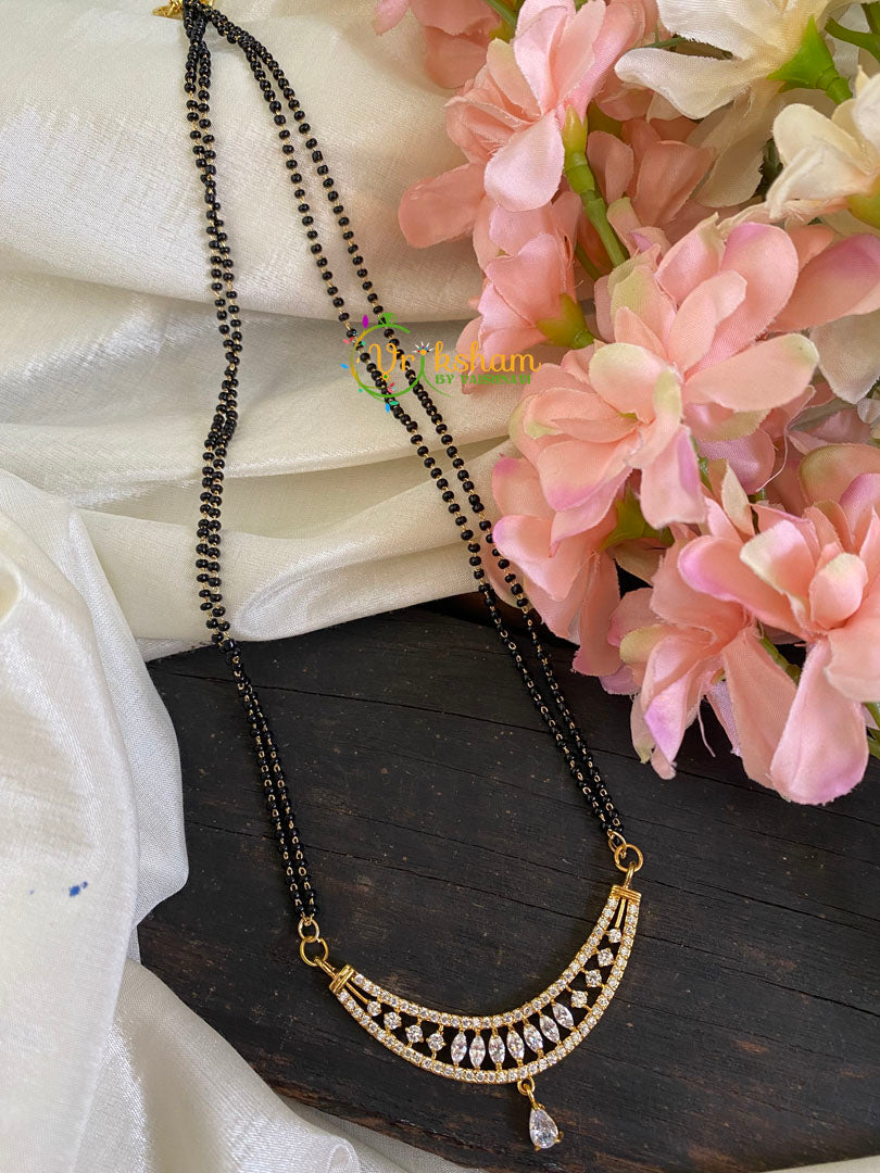 Traditional AD Stone Pendant Mangalsutra- -Mangalsutra Style geometrical layers of stones arranged to for a smile like shaped stone studded with Tear Drop as pendant Chain Neckpiece.