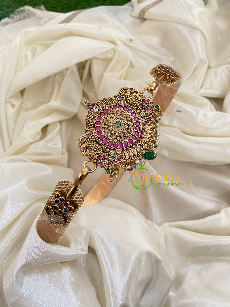 Premium AD Stone Pendant Plain Hipbelt-Elegant centre pendant with ad stone Peacock design or floweral design of embossed plain Hipbelt.