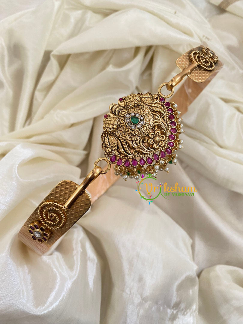 Premium AD Stone Pendant Plain Hipbelt-Elegant centre pendant with ad stone Peacock design or floweral design of embossed plain Hipbelt.