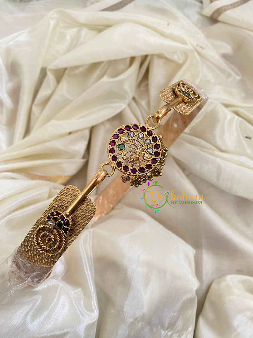 Premium AD Stone Pendant Plain Hipbelt-Elegant centre pendant with ad stone Peacock design or floweral design of embossed plain Hipbelt.