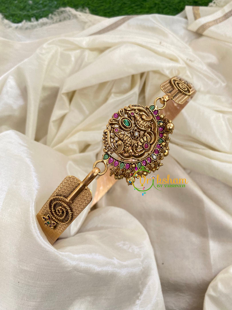 Premium AD Stone Pendant Plain Hipbelt-Elegant centre pendant with ad stone Peacock design or floweral design of embossed plain Hipbelt.