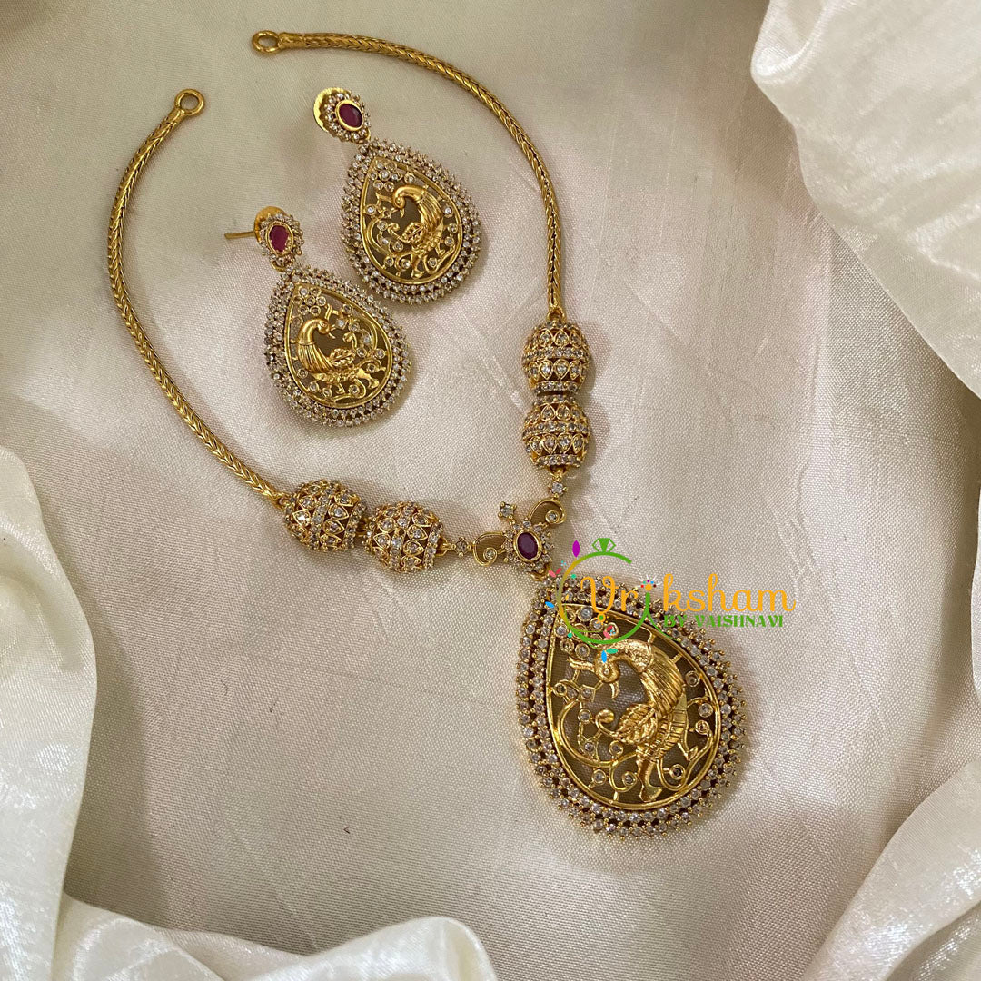 AD Stone Pendant Short neckpiece - simple Pendant neckpiece and stone studded; comes with matching earrings.