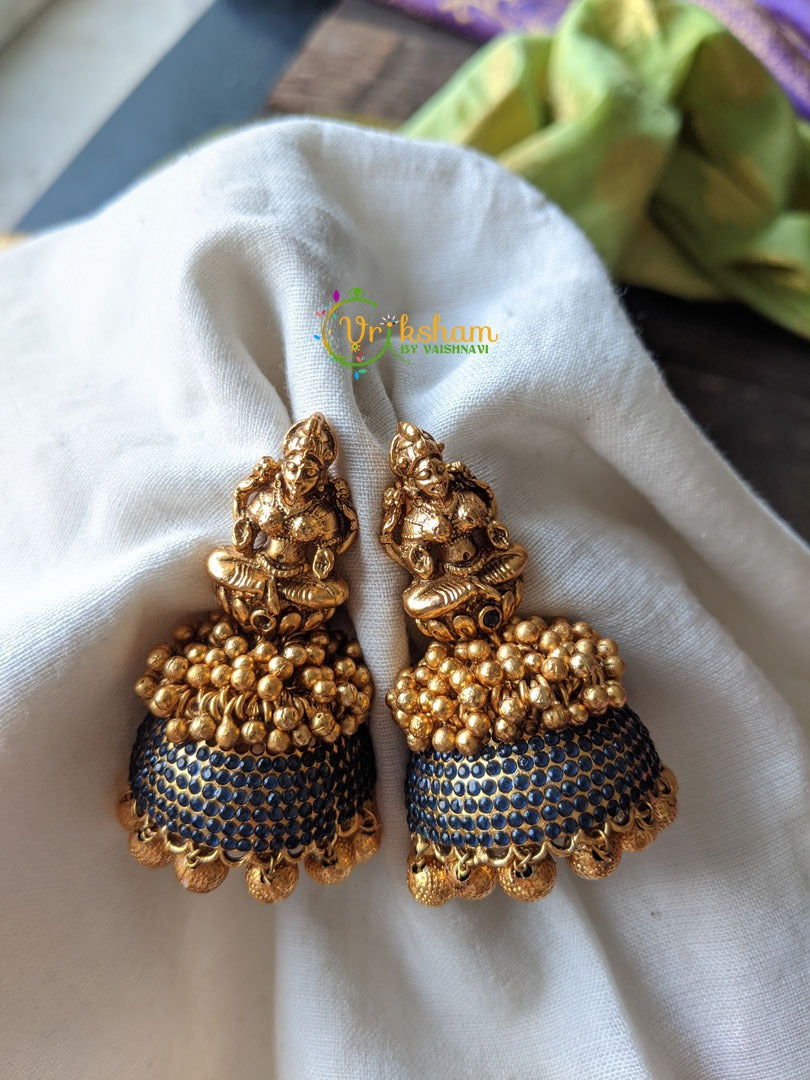AD Stone Temple Lakshmi Jhumkas -Jumbo Size Blue AD Stone jhumkas premium Matt Finish with ghungroos.
