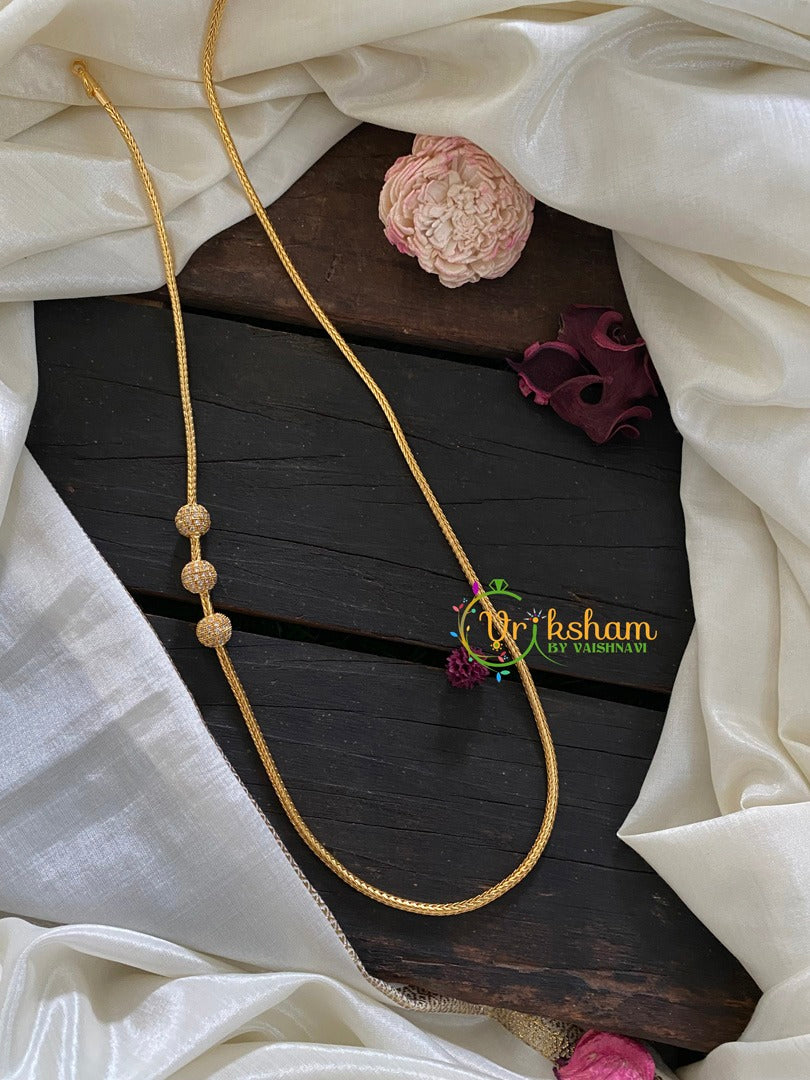 Traditional AD Stone White Ball Mugappu Chain 2– stone studded round 3 ball mugappu chain.
