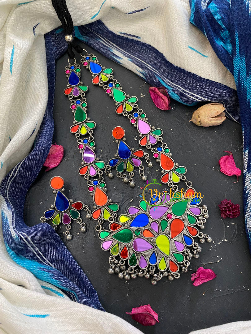 Afghani Glass Neckpiece-Multicolor- glass set neckpiece; comes with matching earrings.