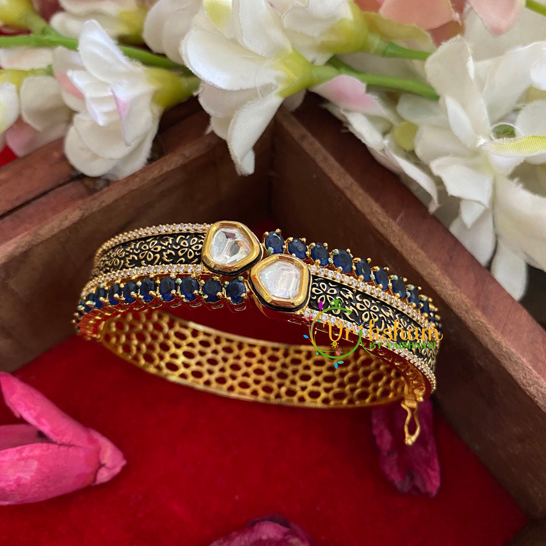 American Diamond Bracelet-Blue and white AD stone stone pattern -Gold Tone Bracelet.
