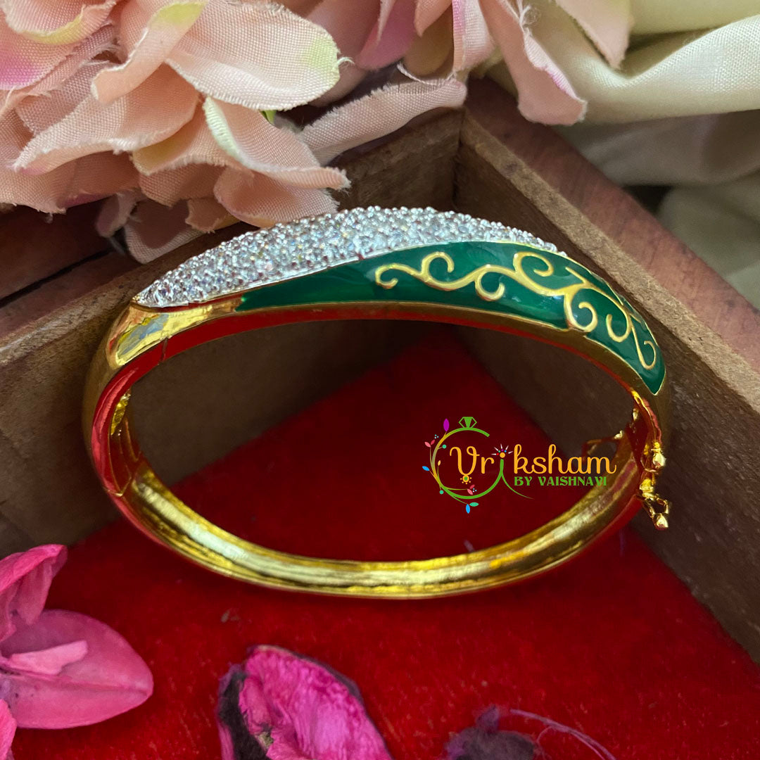 American Diamond Bracelet- green enamel and white AD stone pattern -Gold Tone Bracelet .