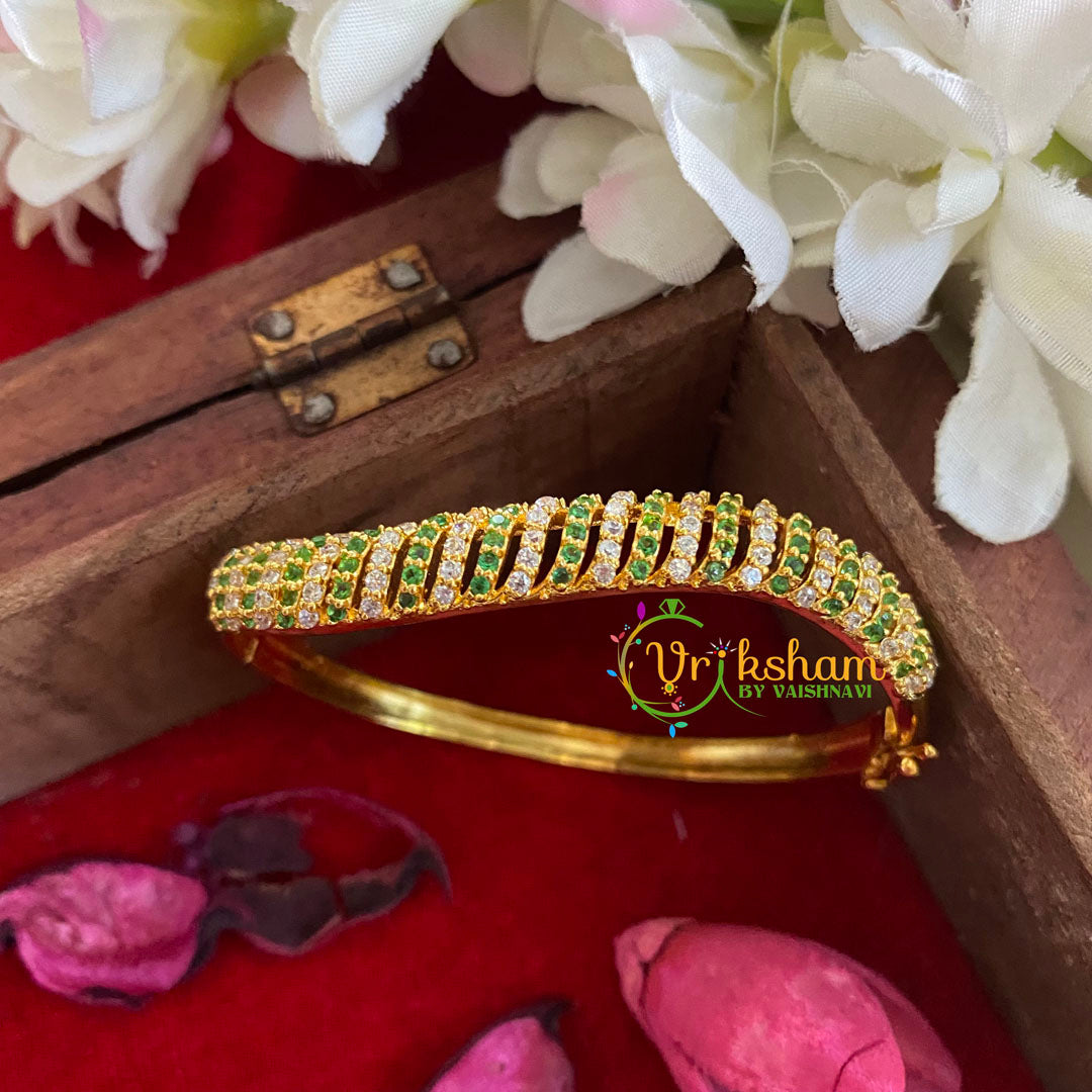 American Diamond Bracelet-green and white AD stone pattern -Gold Tone Bracelet. Make Material -American Diamond Bracelet is made of AD Stones ;Copper and alloy with metal plating. ~ Consists of...