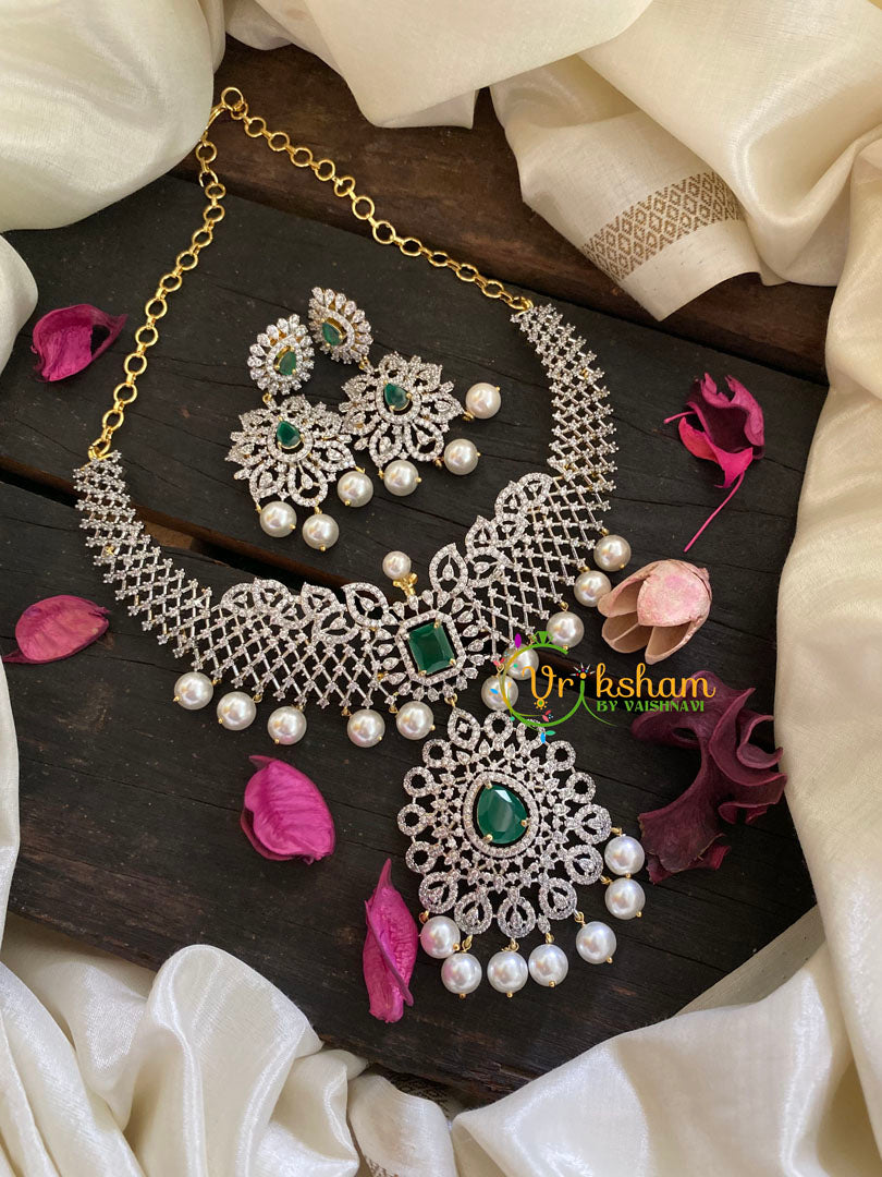 Green Stone American Diamond Bridal Neckpiece-G3335