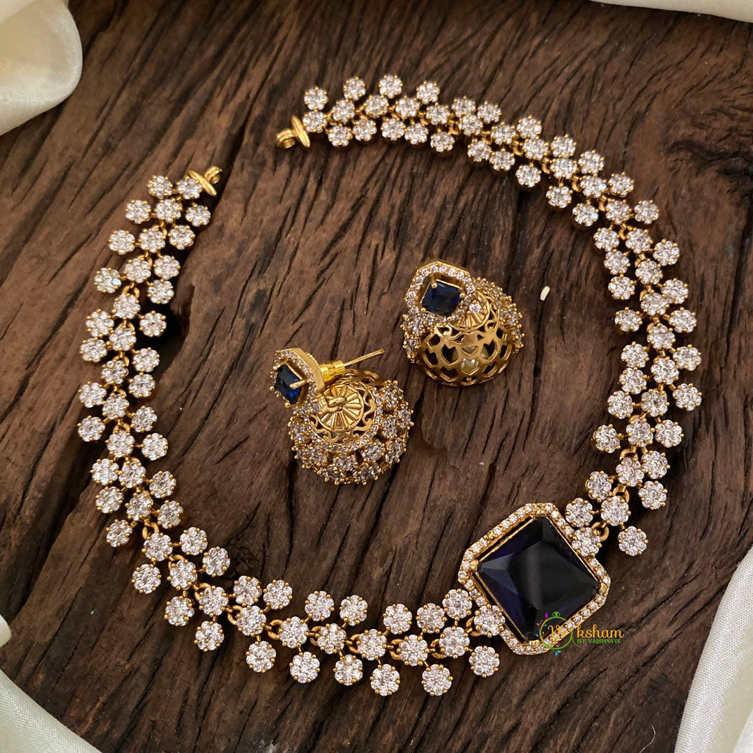 Deep Blue American Diamond Choker Short Neckpiece -G10836