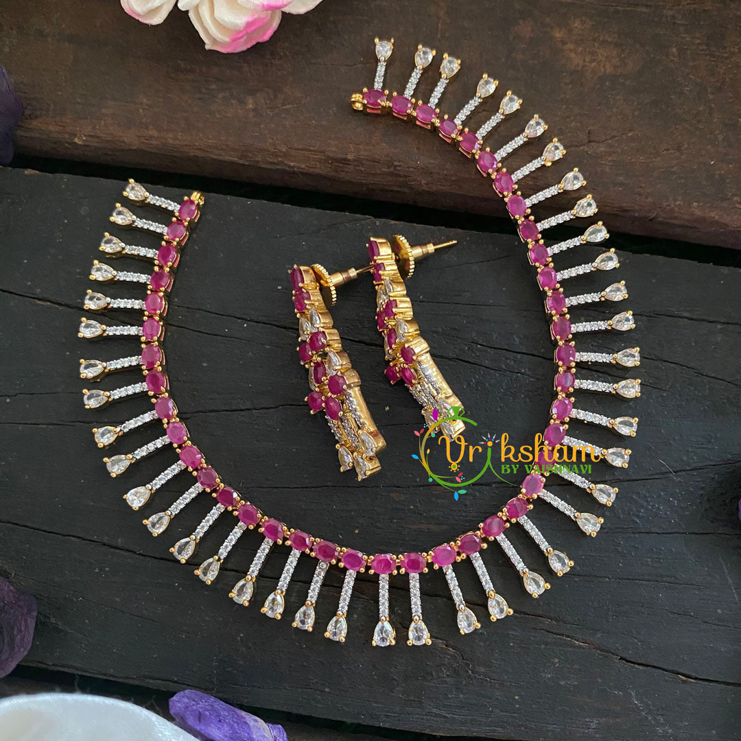 American Diamond Choker Short Neckpiece - NO Pendant-AD stone studded jewelry -set of choker and earrings