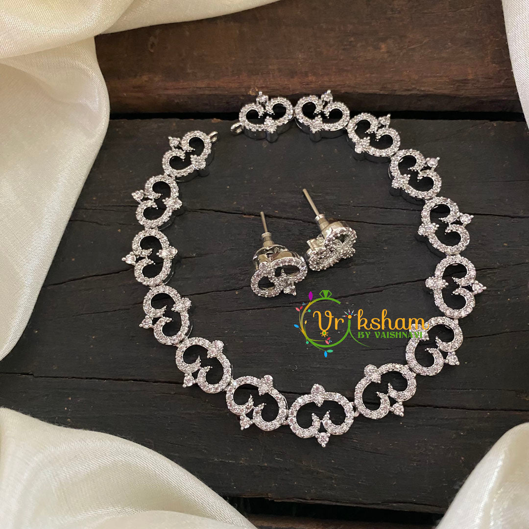 White Tone American Diamond Choker Short NeckpieceWhite - NO Pendant- White AD stone studded jewelry -set of neckpeice and earrings.