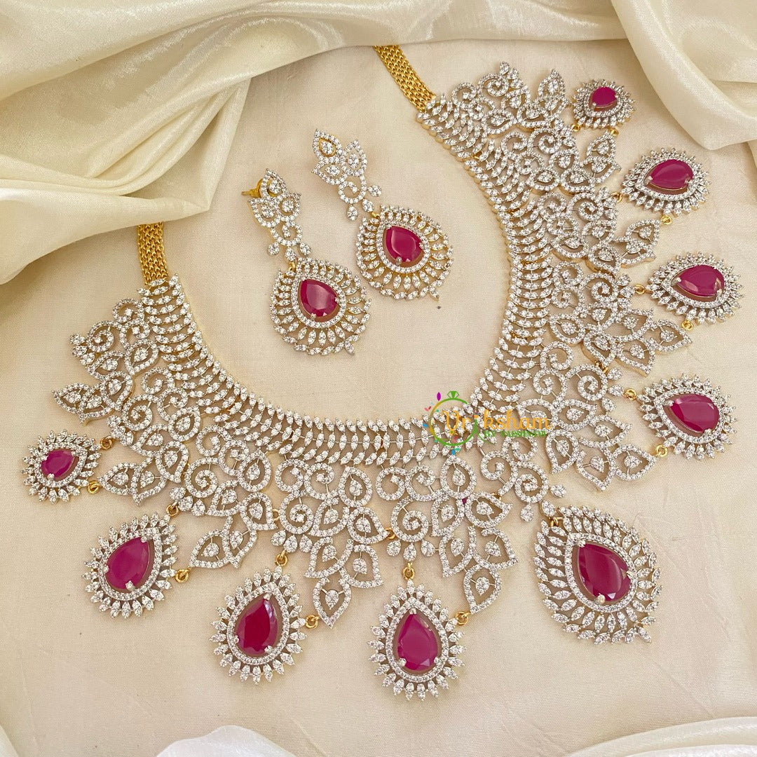 American Diamond Choker -White and Red - Gold tone - comes with AD stone ear hangings.