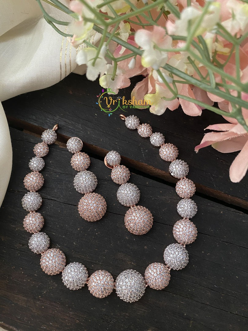 American Diamond Choker -White and gold tone - white big geometric patterned neckpiece. Comes with matching ear danglers.