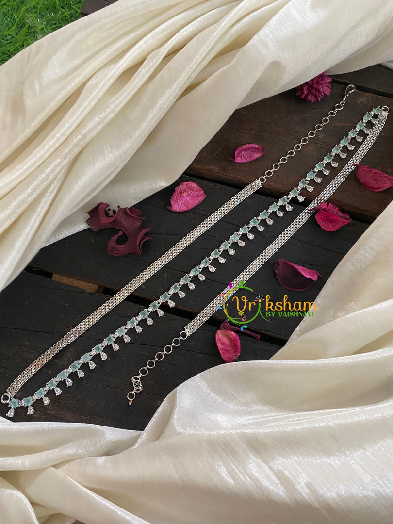 American Diamond Hip Chain- Bridal Hipbelt-Pastel green –white tone hip chain -tear drop design with adjustable back chain.