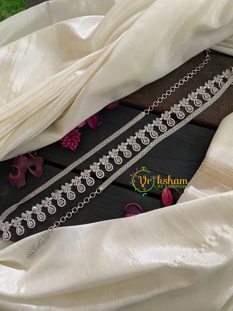 American Diamond Hip Chain- Bridal Hipbelt-Pastel-drops pattern –white tone hip chain with adjustable back chain.