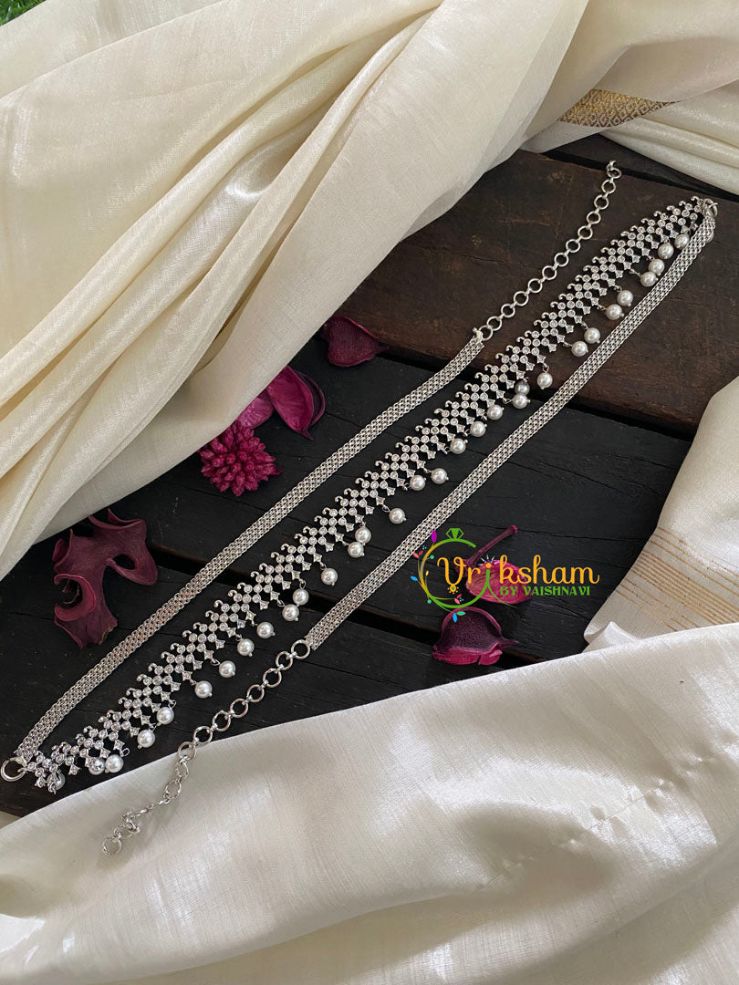 White Tone American Diamond Hip Chain- Bridal Hipbelt-Dotted –white tone hip chain - design with adjustable back chain.