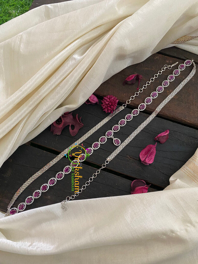 White Tone American Diamond Hip Chain- Bridal Hipbelt-Red –white tone hip chain -Links design - WITH PENDANT with adjustable back chain.