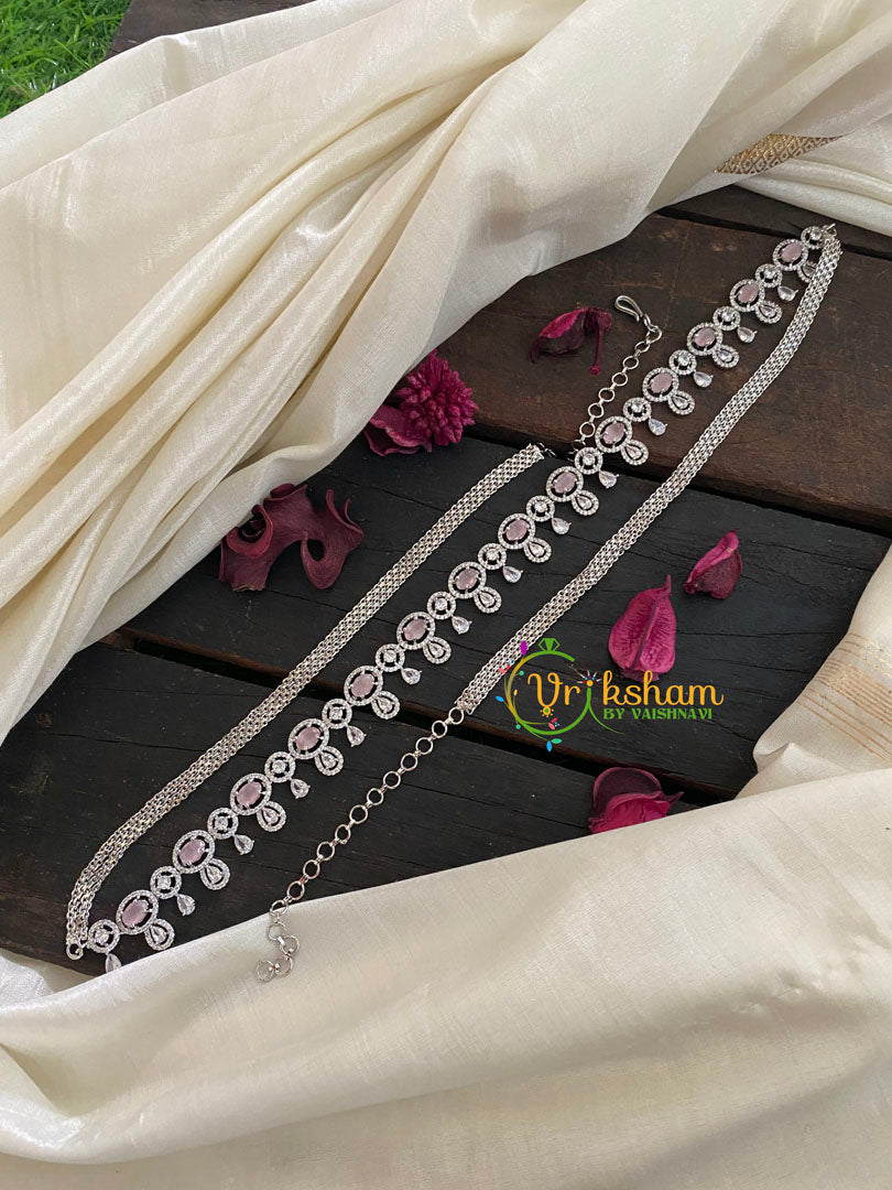 White Tone American Diamond Hip Chain- Bridal Hipbelt-Oval and Tear Drops-Pastel Pink stone pattern –white tone hip chain with adjustable back chain.