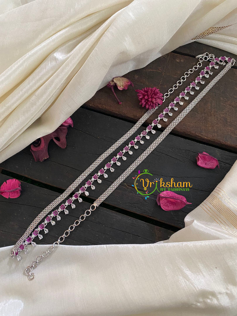 White Tone American Diamond Hip Chain- Bridal Hipbelt-Red rectangular stone links hip chain -white tear drop design with adjustable back chain.