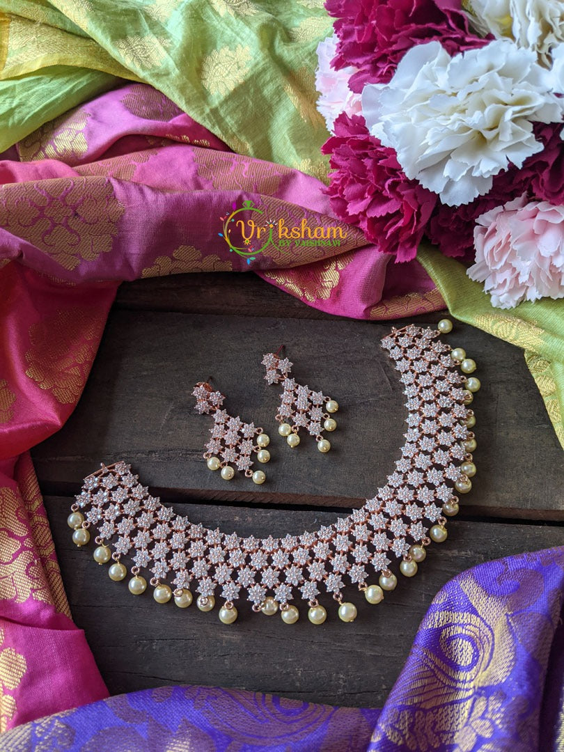 American Diamond Nakshatra Choker -Pearl finish choker, comes with matching danglers.