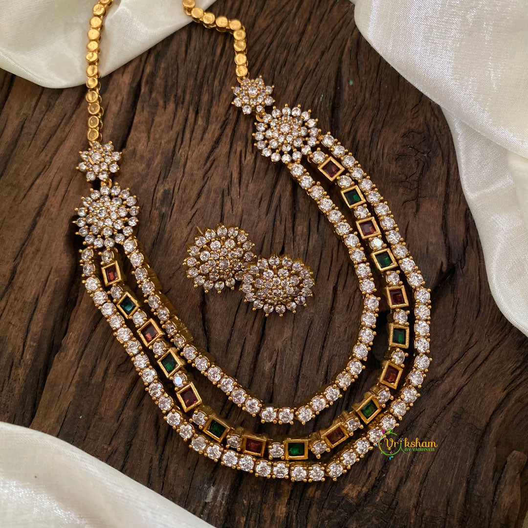 Red Green Layered American Diamond Short Neckpiece -G10805