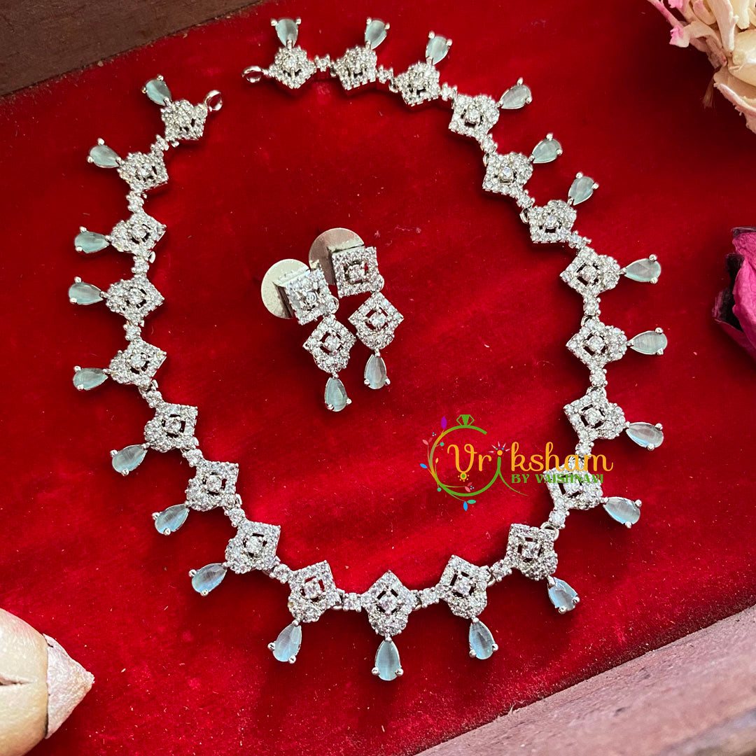American Diamond Short Neckpiece- Pastel Tear Drop-set of choker and earring; diamond shaped white stone with tear drops pattern neckpiece.