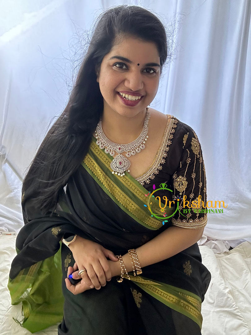 For more such neckpieces visit, https://vrikshamindia.com/product-category/golden-jewellery/american-diamond/
