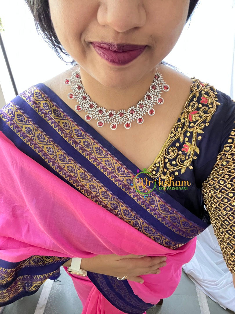 Bridal American Diamond Short Neckpiece-RED-WHITE TONE-G6916