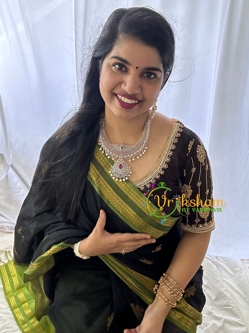 For more such neckpieces visit, https://vrikshamindia.com/product-category/golden-jewellery/american-diamond/
