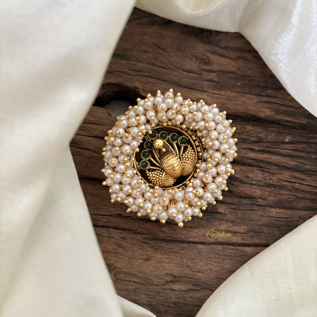 Antique Cluster Pearl Billai- Bird Bun Billai -Green-hair accessory for festive braids and bun hairstyling.