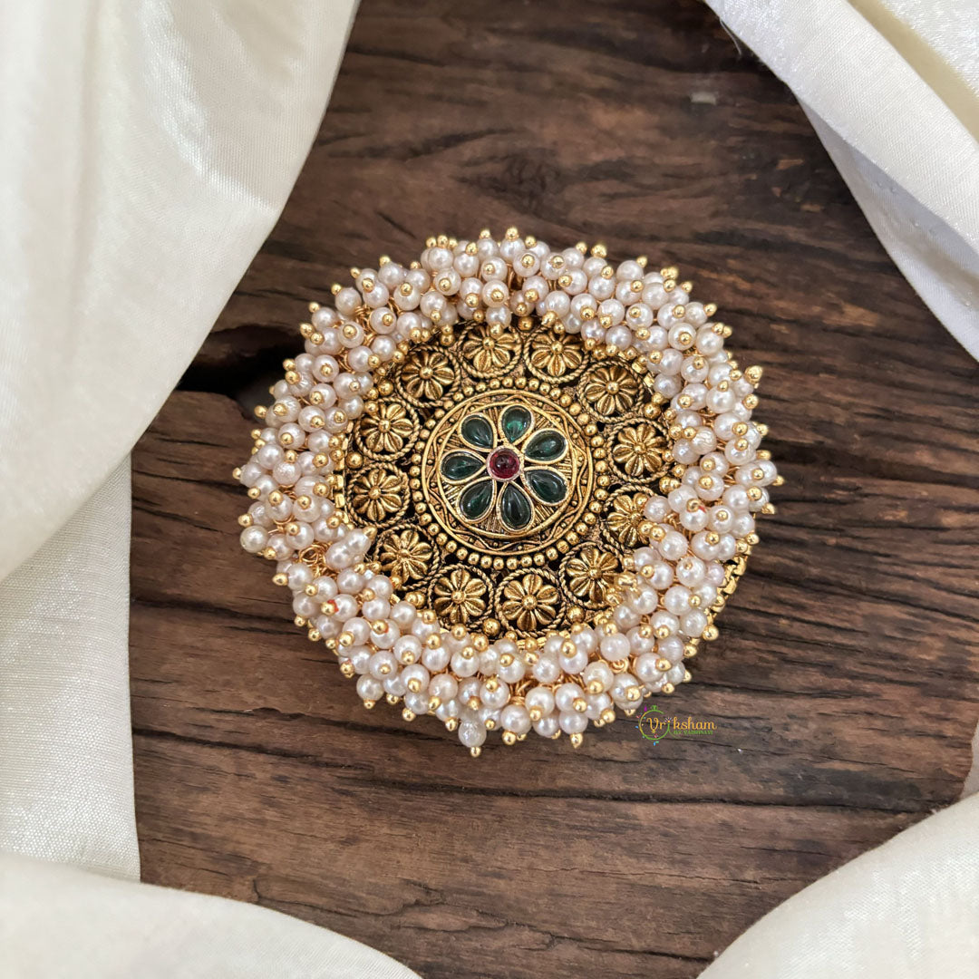 Antique Cluster Pearl Billai-Bun Billai -Flower-Green red-G10379