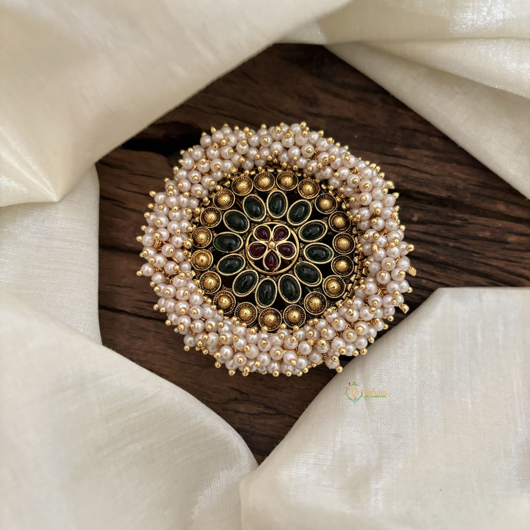 Antique Cluster Pearl Billai-Bun Billai -Flower-Green Red-hair accessory for festive braids and bun hairstyling.