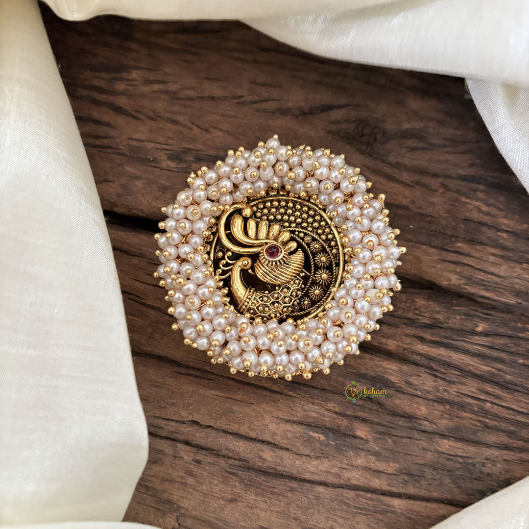 Antique Cluster Pearl Billai- Peacock Bun Billai -hair accessory for festive braids and bun hairstyling.