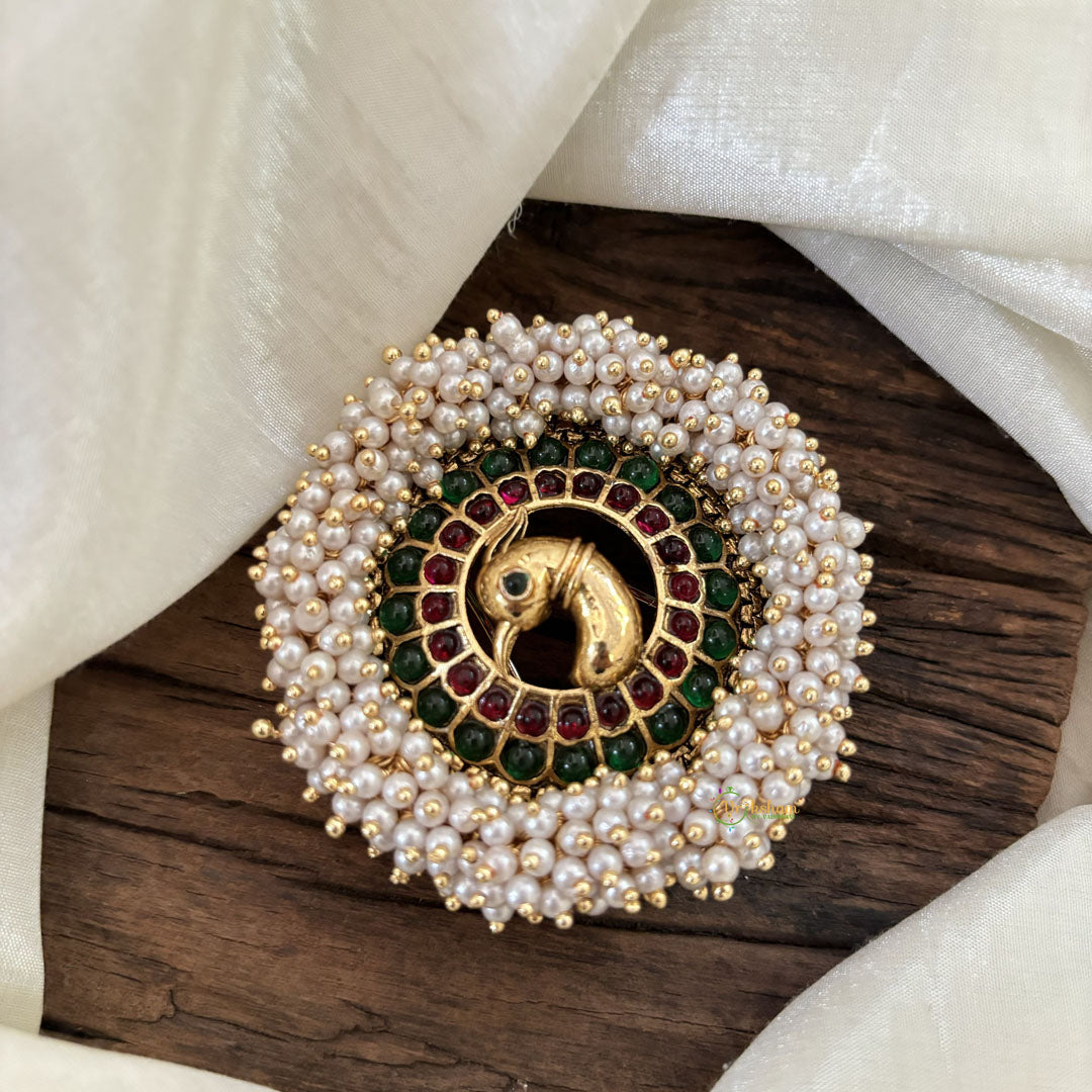 Antique Cluster Pearl Billai- Peacock Bun Billai -Red Green-hair accessory for festive braids and bun hairstyling.