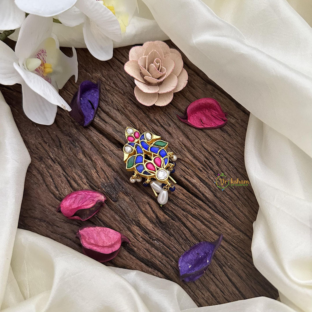 Antique Dual Peacock Jadau Juda Pin-Pearl- White Beads - G15282