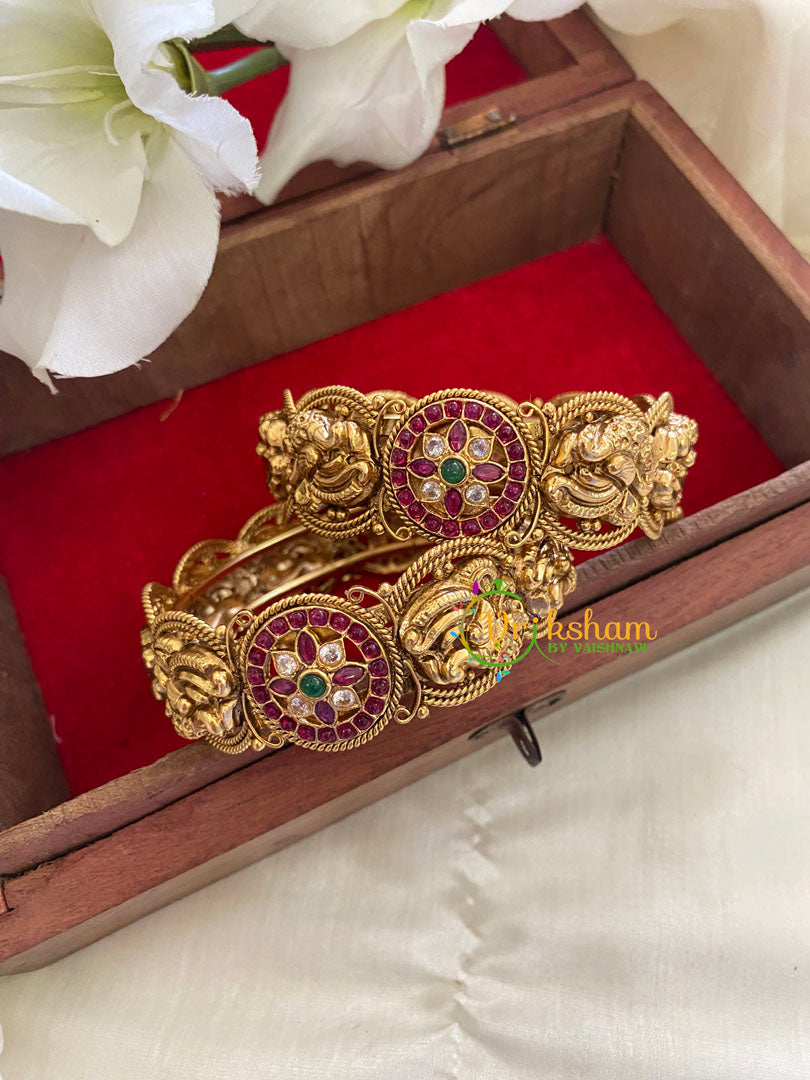 Antique Gold Bridal Bangles - Gold Look Alike Polish pattern AD stone studded and peacock pattern –comes as pair only.