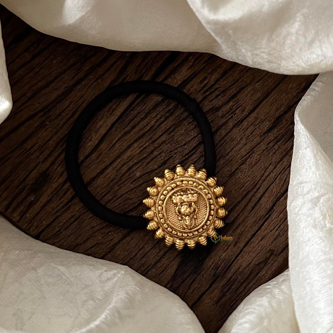 This antique gold look-alike Lakshmi rubber band is not only a stylish accessory, but it also symbolizes prosperity and wealth. Add a touch of elegance to any outfit while attracting positive energy and good fortune. Perfect for everyday wear or special occasions.