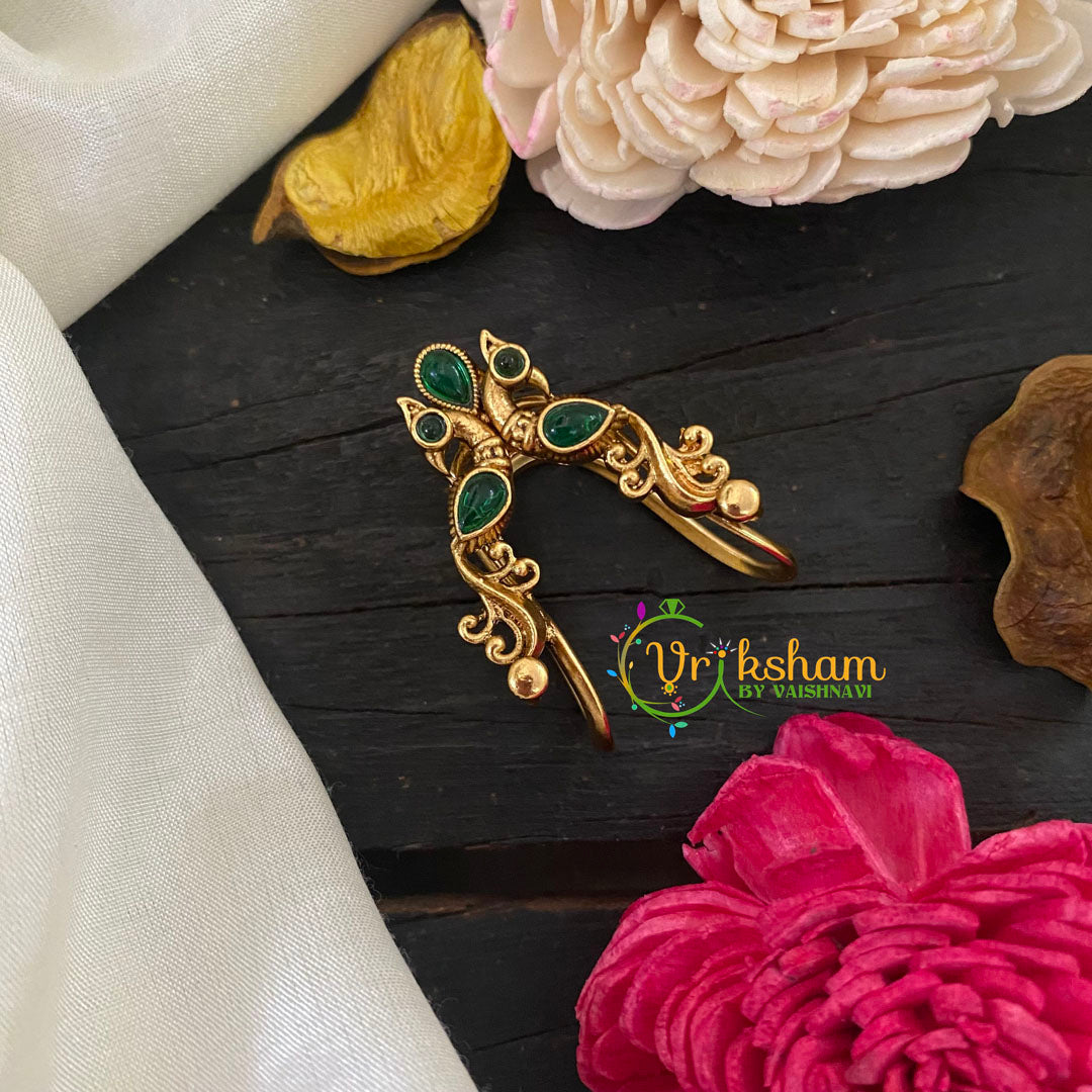 Antique Gold Look Alike Vangi Ring -Green Peacock-G8938