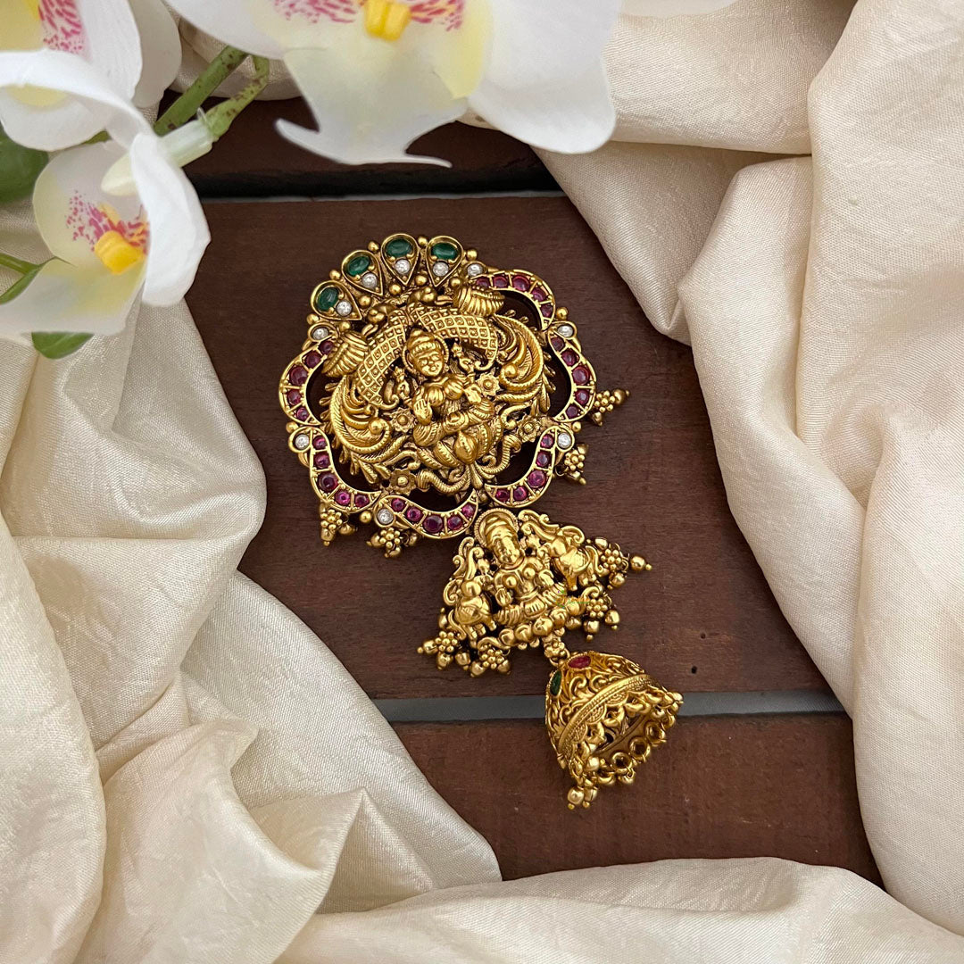 Elevate your traditional Indian look with our Antique Temple Jada Billai! This intricately designed hair accessory features a stunning Lakshmi Bun Billai surrounded by red, green, and golden pearls. Add a touch of elegance to your ensemble and channel your inner goddess!