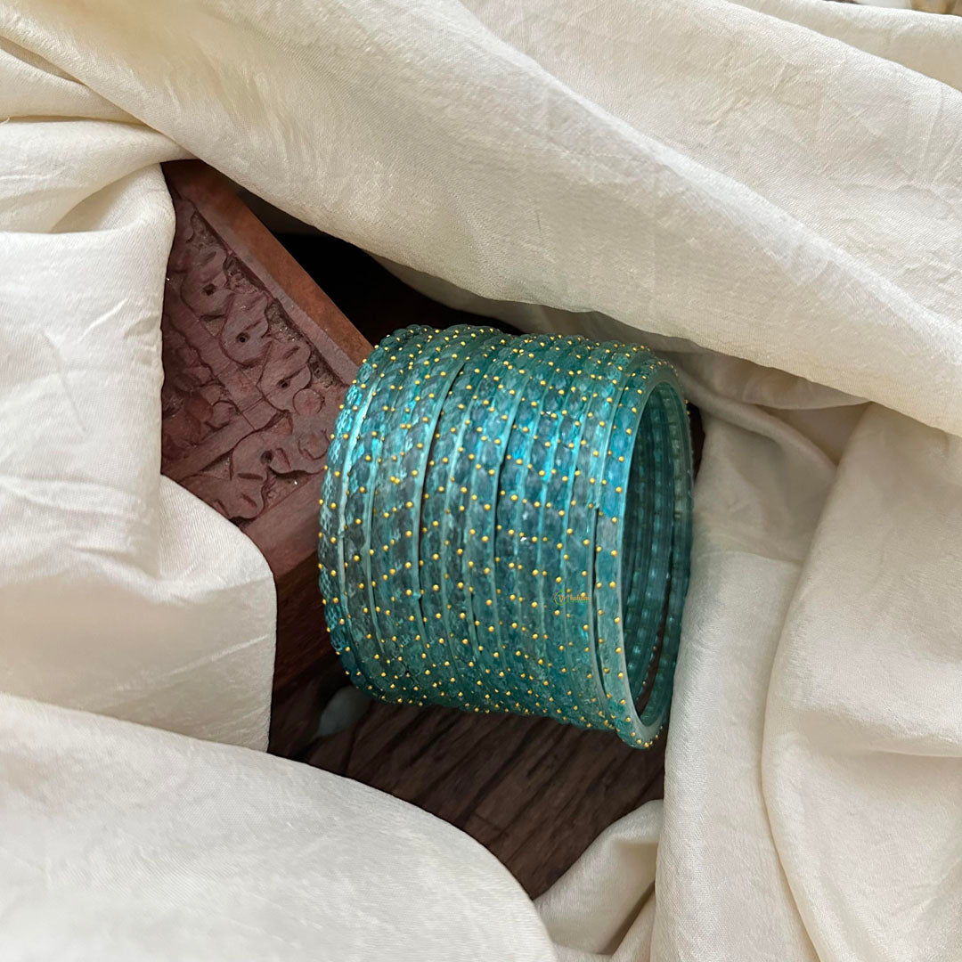 Aqua Blue Rain Drop Thin Glass Bangle-Set of 12-G13645