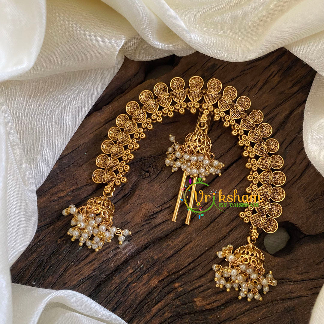Premium Arch Shaped Single Jada Billai -Bun Billai– Hair Accessory- Floral patterned imitation ad stone set single piece billai with jhumkas.