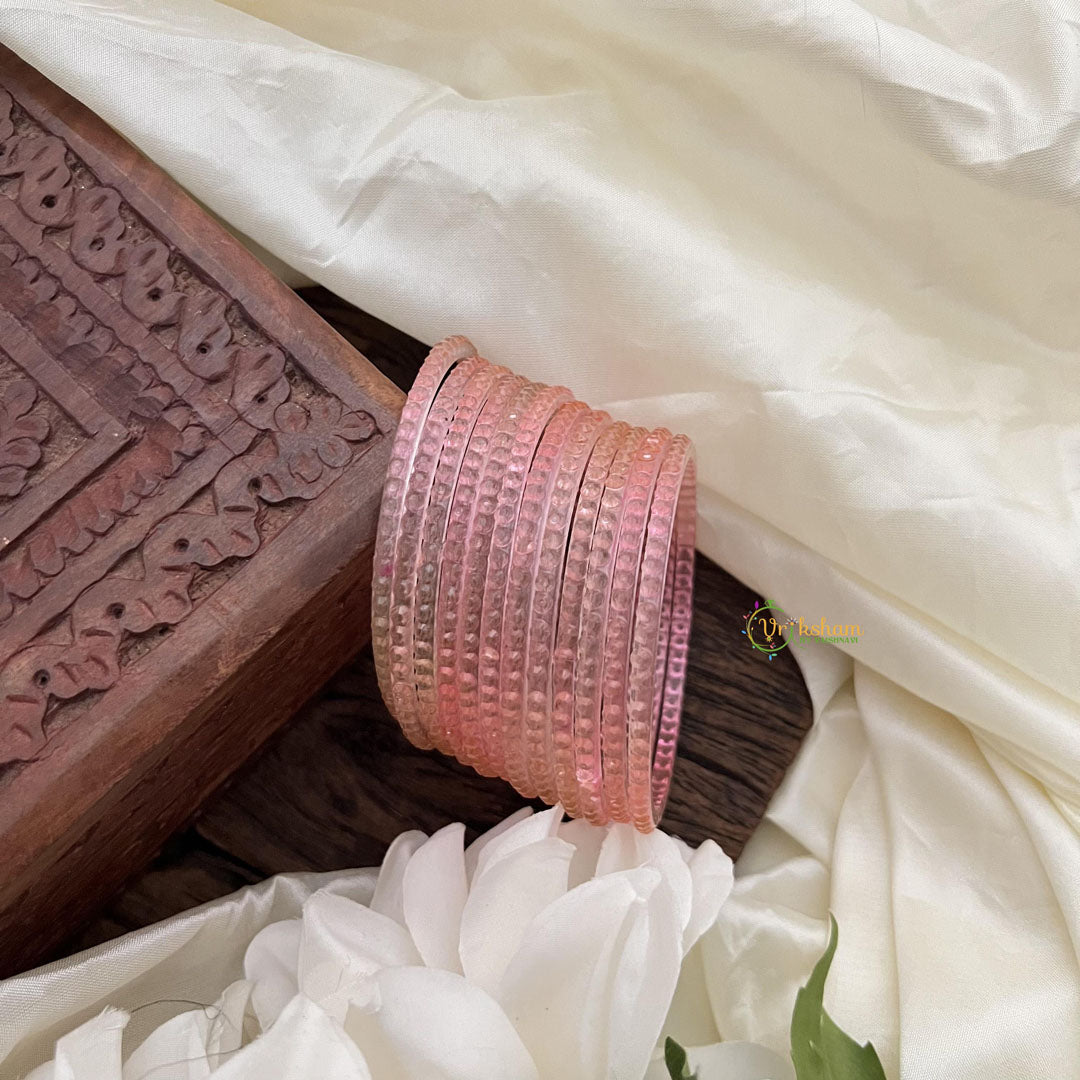 Elevate your style with the JS Thin Glass Bangle set. This set of 12 bangles features delicate and intricately designed glass bangles that will add a touch of sophistication to any outfit. Perfect for any occasion, this bangle set is a must-have for any fashion-forward individual looking to add a luxurious touch to their wardrobe.