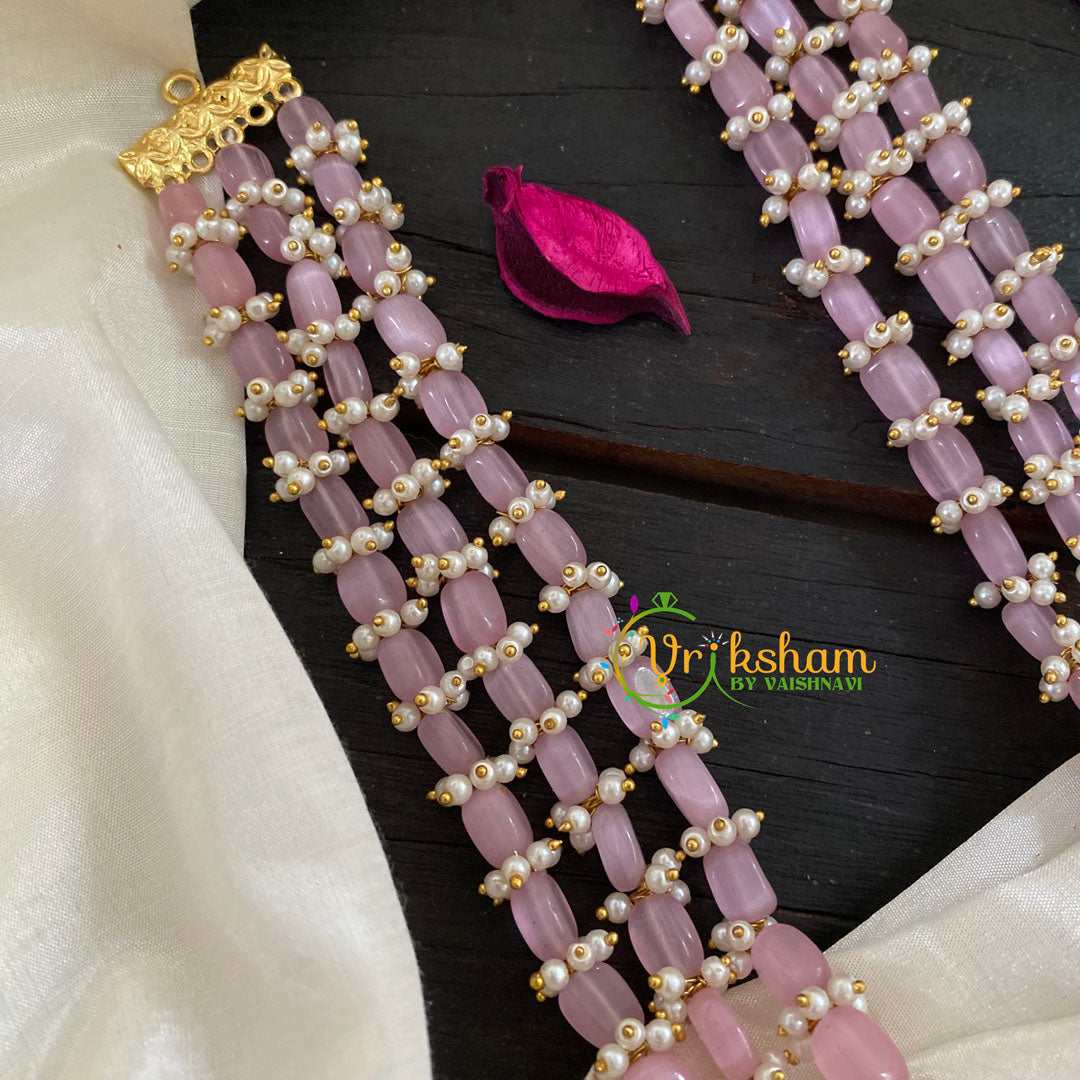 Baby Pink Layered Bead Malai - 3 layered No pendant; with pearl interludes Neckpiece only.