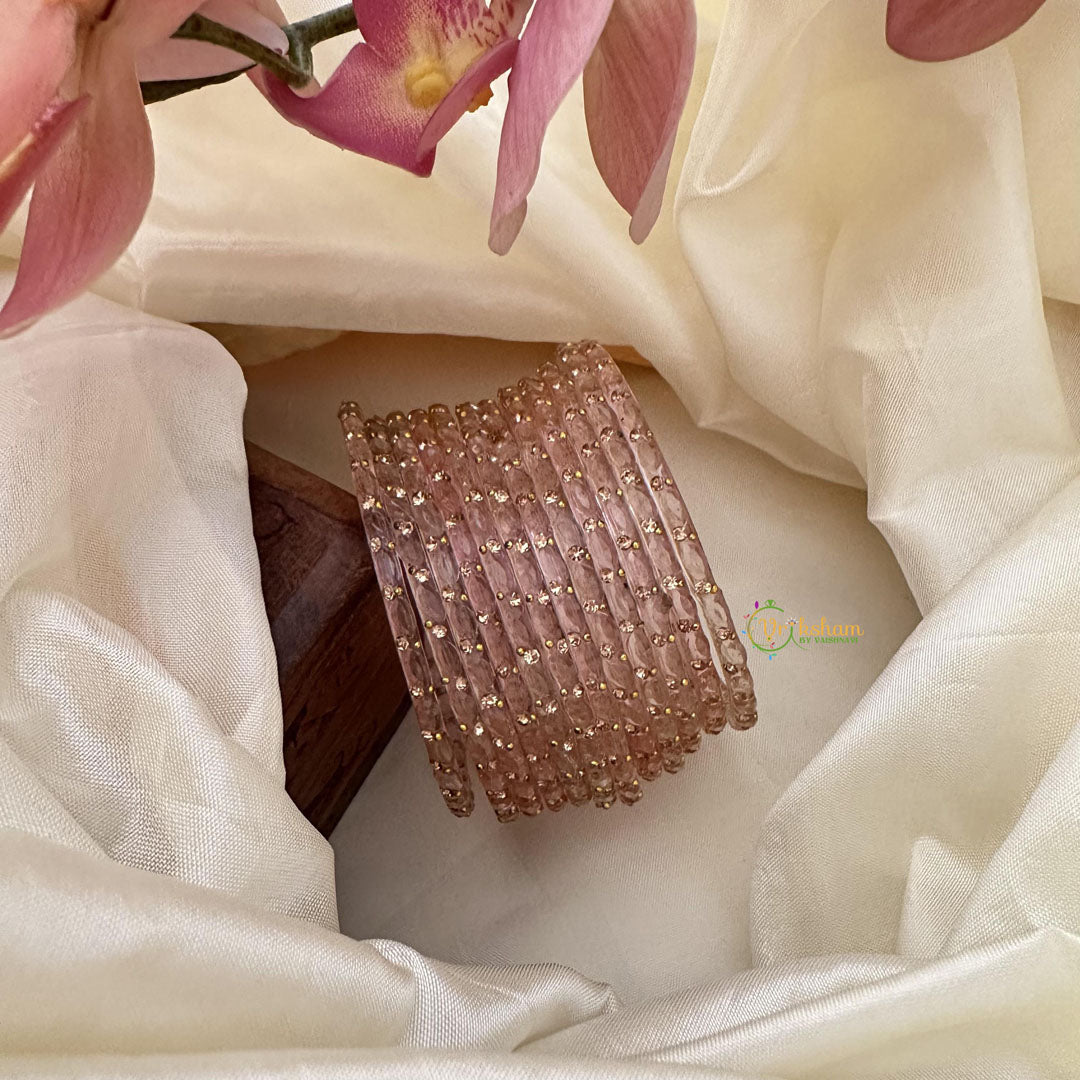 Enhance your wrists with these exquisite MD Thin Glass Bangles. This set of 12 is crafted with premium glass, offering a lightweight and elegant feel. The bangles add a touch of luxury with their thin design, perfect for any occasion. Elevate your style with this stunning collection.