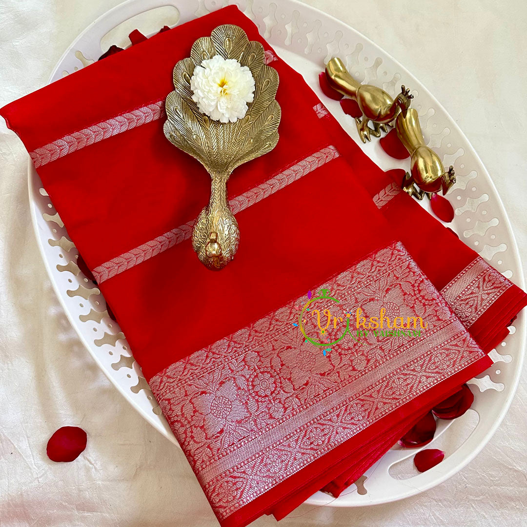 Red with Silver Banarasi Kora Organza Silk Saree-VS2246