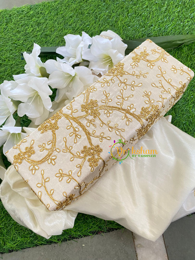 Bangle Storage Box-Single Rod Bangle Organizer -beige color with - floral pattern - gold thread work.