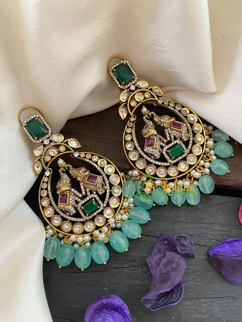 Pastel Green Bead Victorian Diamond Danglers -Elephants and stone set stud part; pearl and bead finish danglers.