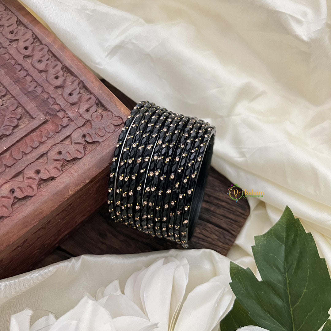 Black MD Thin Glass Bangle-Set of 12-G14417